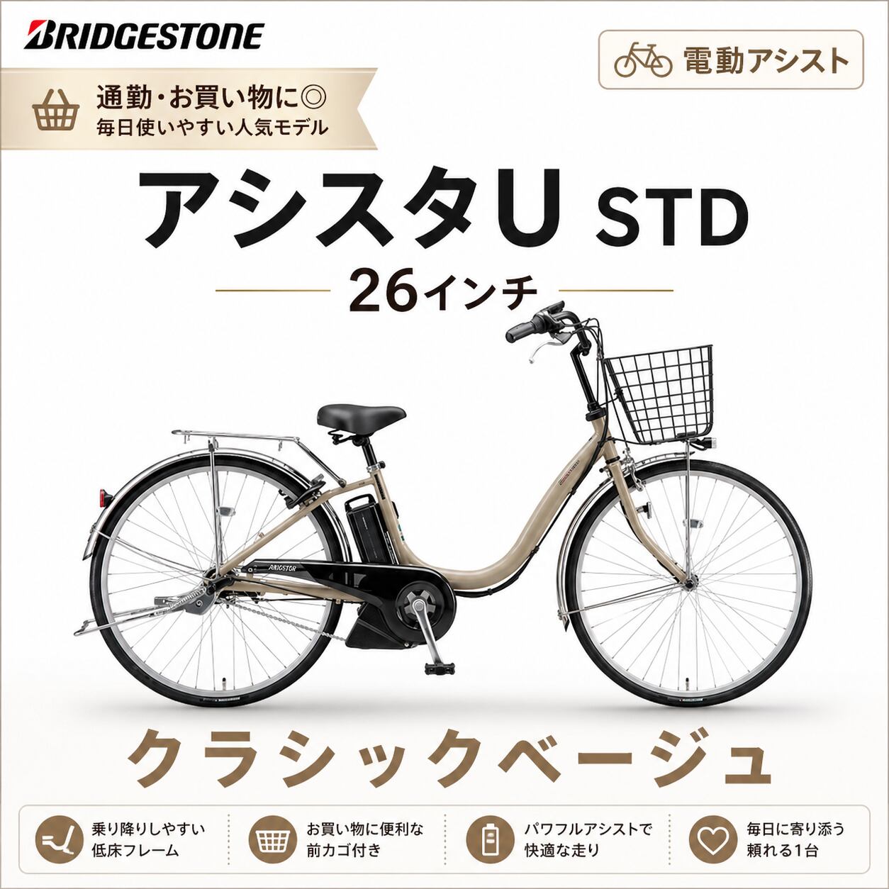 ブリヂストン アシスタU STD 26インチ クラシックベージュ 電動アシスト自転車